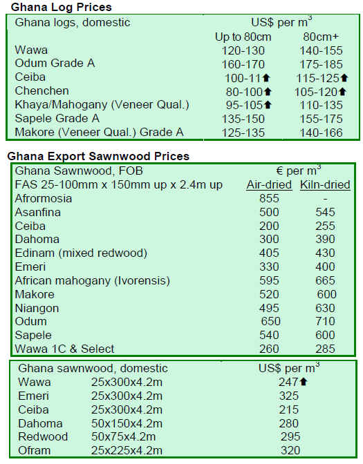 Prices for wood products from Guyana remain generally