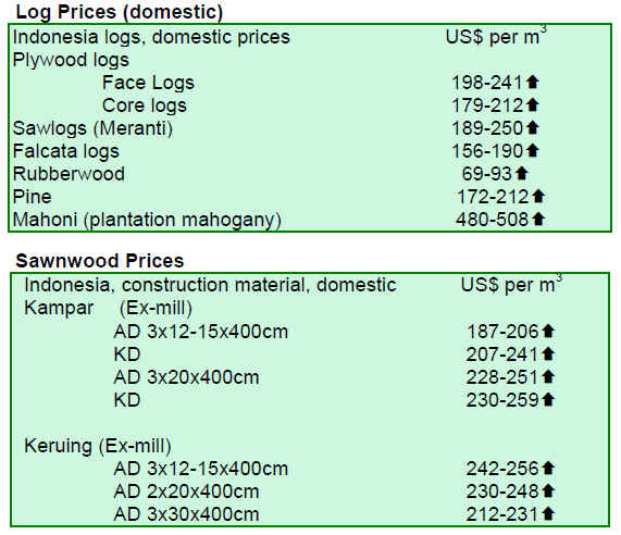Sawmills in the region continue to report on strong order books. Sawnwood export prices are firm and unchanged over the period under review.