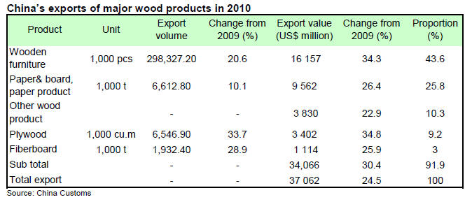 Fibreboard imports in 2010 amounted to 268,300 tonnes,