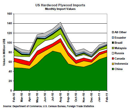 Balsa imports dropped by 26% to 3,970 cu.m. in February.