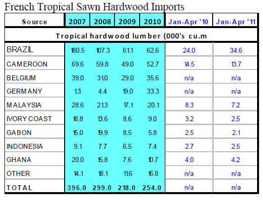 Imports rebounded to 254,000 cu.m in 2010 and have
