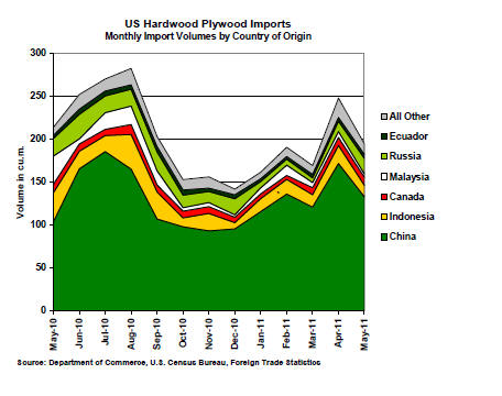 April to 1,697 cu.m. in May due to higher sapelli imports.