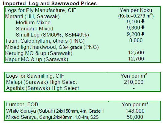 region as wholesale log prices in Japan continue to fall.
