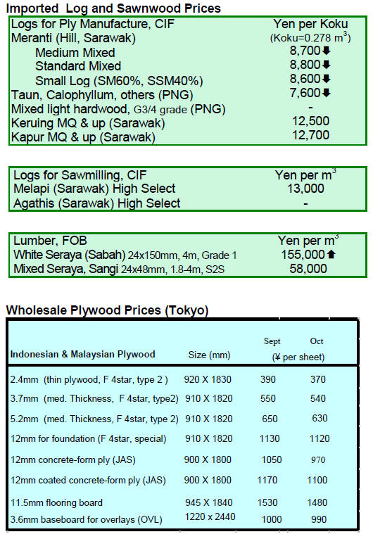 October are also low so the market, says the Japan Lumber