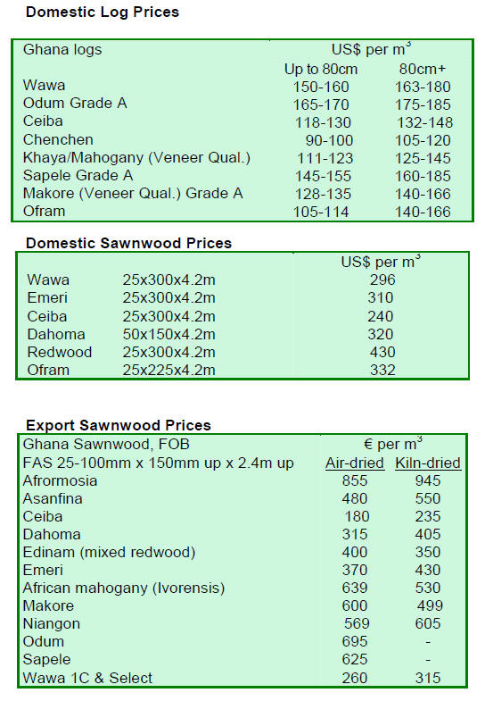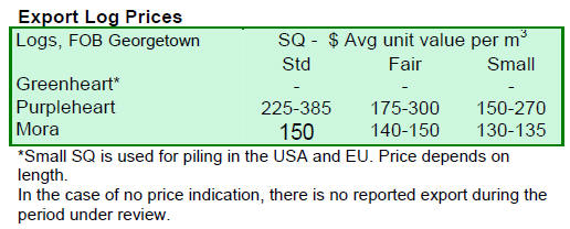 Dressed Greenheart sawnwood prices were firm in the