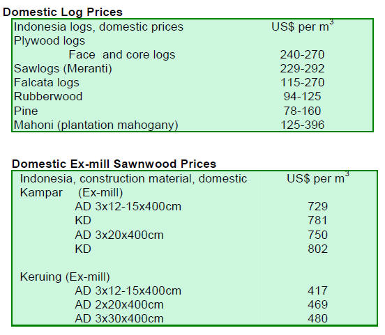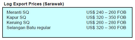 logs for export were priced at US$ 385 per cubic metre