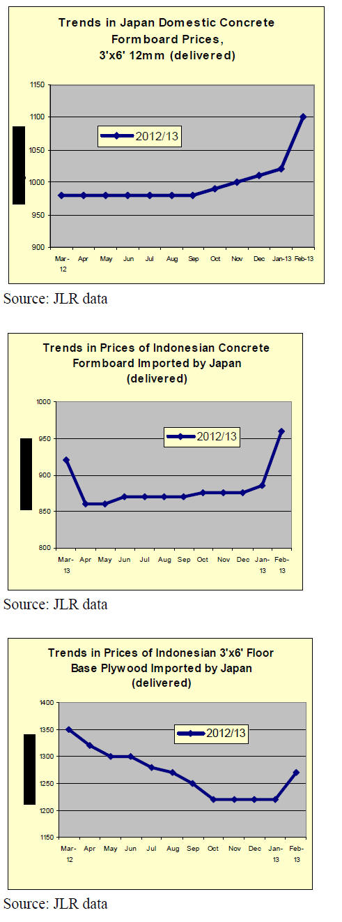 plywood mills in Northern Japan has been down due to cold weather and heavy