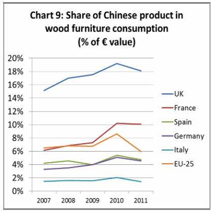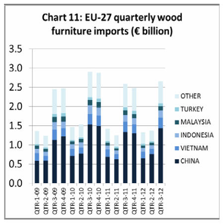 Trends in EU wood furniture imports during 2012 are more difficult to