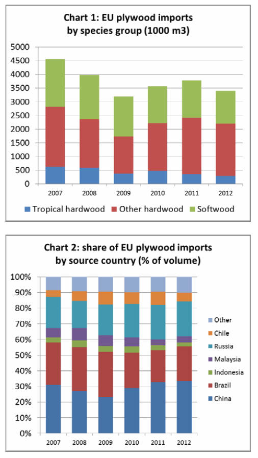 EU imports of plywood were 3.4 million m3 with value of €1.23 billion in