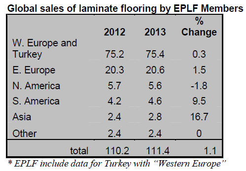EPLF data shows that sales of laminated flooring by EPLF members fell