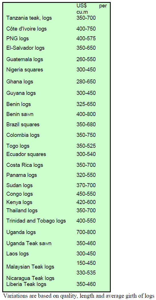 from US$1,166 to US$1,060 per cubic metre FOB.