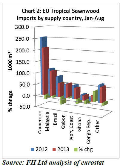 sawn tropical hardwood will exceed 900,000 m3 in 2013
