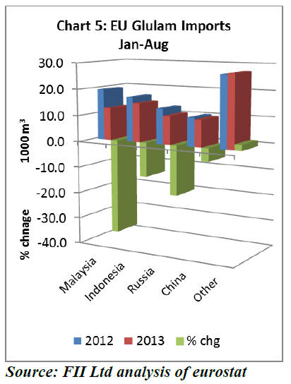 further declines in EU glulam imports (Chart 5). EU