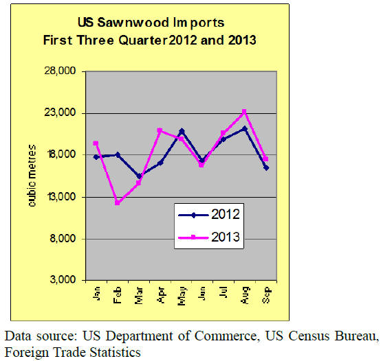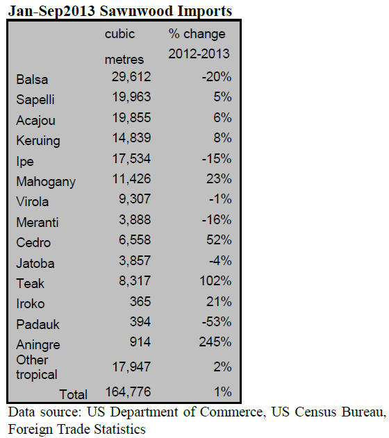 Tropical sawn hardwood imports were 17,443 cu.m. in