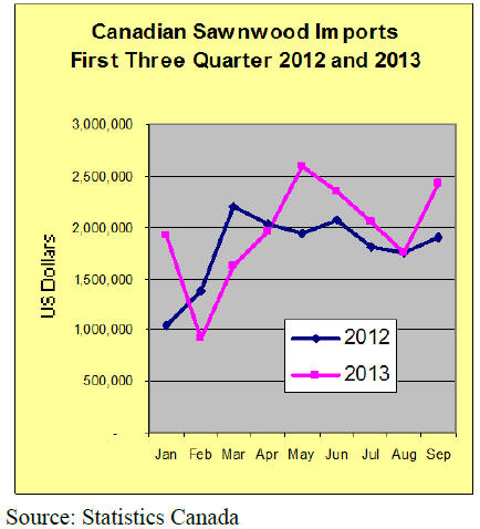 Imports are mainly sapeli (US$2.8 million year-to-date