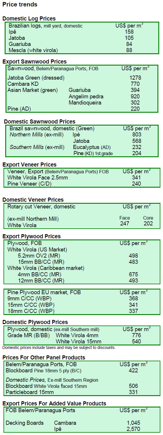 FOB price of US$235 per cubic metre. The primary