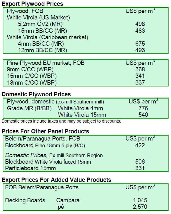 US$594 per cubic metre FOB for markets in the Caribbean