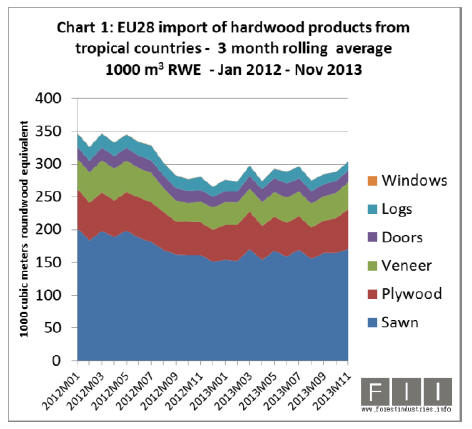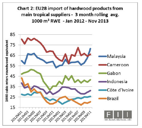 hardwood supplier to the EU (mainly of sawnwood), fell