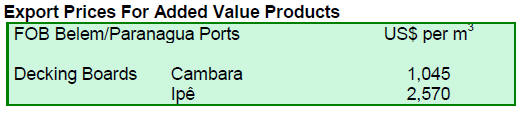 attractive for producers. Guyana‟s washiba (ipe) continued
