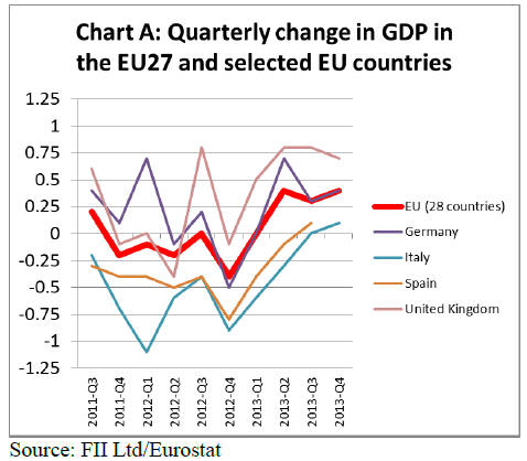 In the euro-zone, 0.4% and 0.3% GDP growth respectively