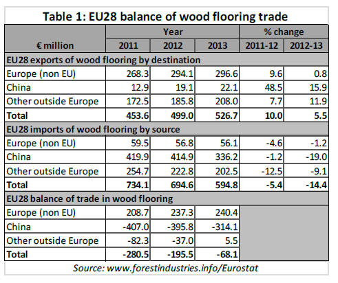 flooring fell sharply from Indonesia (-22% to euro 33m),