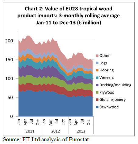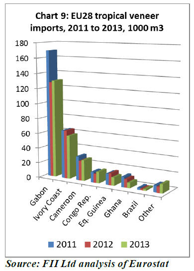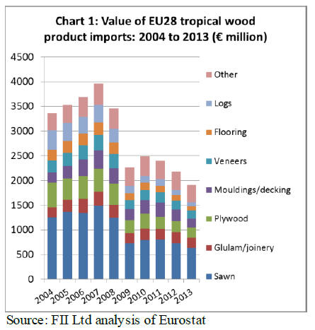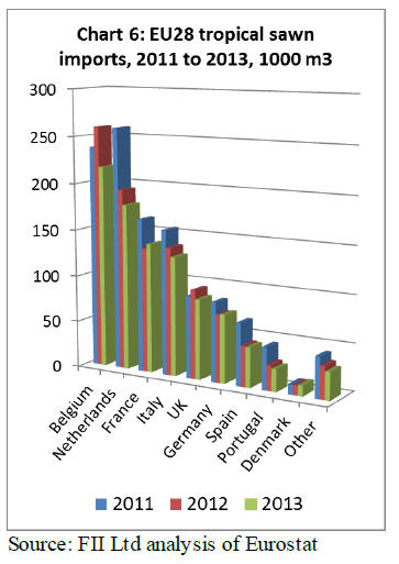EU imports of tropical hardwood logs were 186,000 m3 in