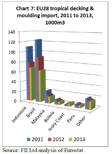 Indonesia declined 9% to 21,000 m3 in 2013. However,