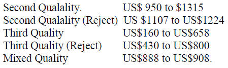 US$566 per cubic metre to US$768 per cubic metre exmill