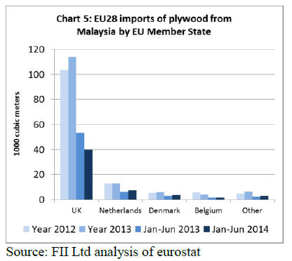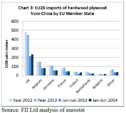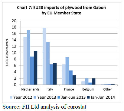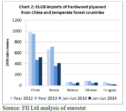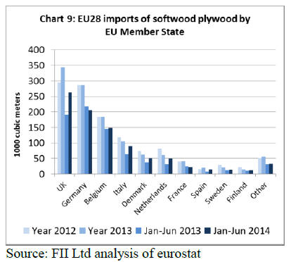 Imports from Brazil increased 19% to 657,000 m3 in the