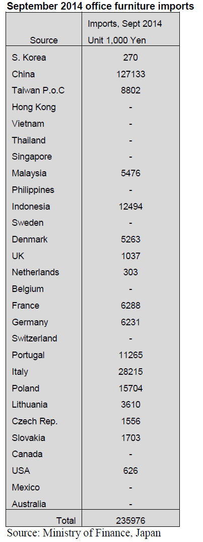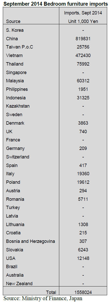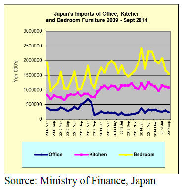 Overall, kitchen furniture imports by Japan fell by 3% in