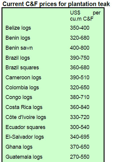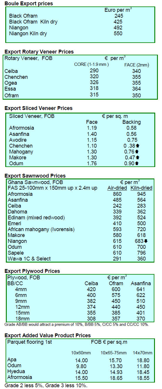 ranging from US$125 to US$140 per cubic metre FOB. Prices have since