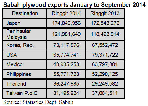 plywood export earnings remained the same at US$2.7 million.