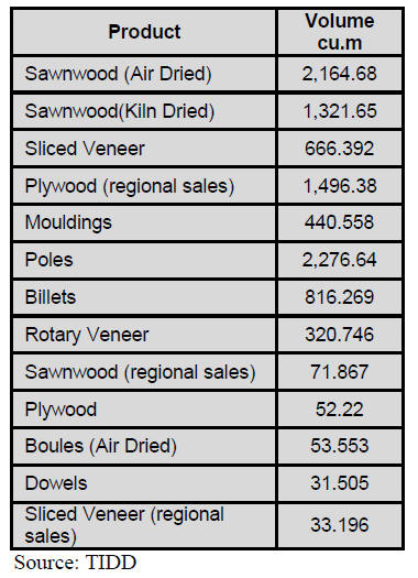 billets, poles, sliced veneer and air dry sawnwood in teak,