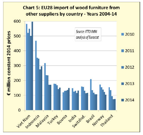 The EU 28‟s trade surplus in wooden furniture fell 8.2%