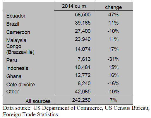 growth in 2014. The US imported 56,644 cu.m. of balsa,