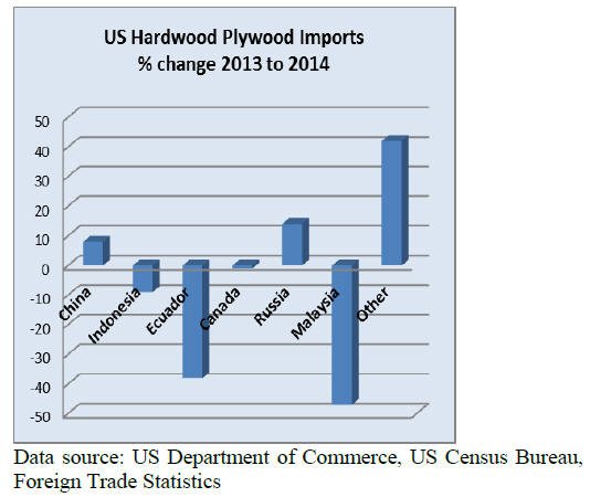 2014 imports of hardwood plywood were slightly lower