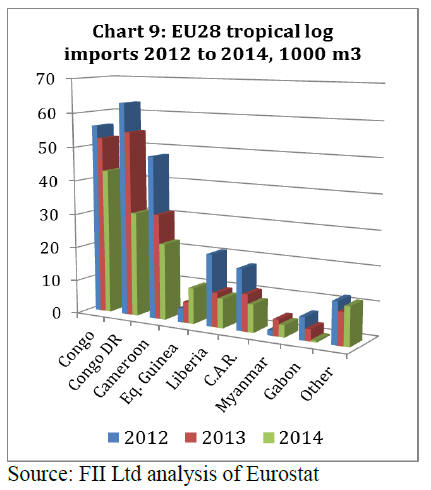 EU imports from Cameroon (-4%), Ghana (-9%) and