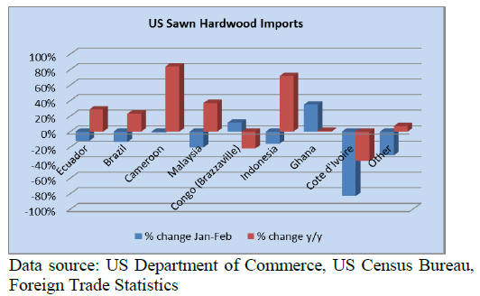 Peru, Ghana and Congo (Brazzaville) to the US increased