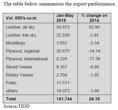 sawnwood (53,975 cu.m) and mouldings (3.955cu.m.)