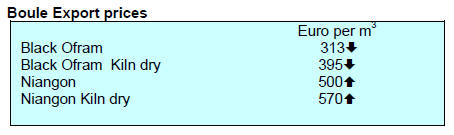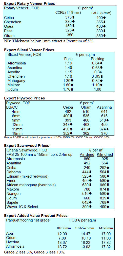 Taiwan (9mm and up) US$ 410/cu.m FOB