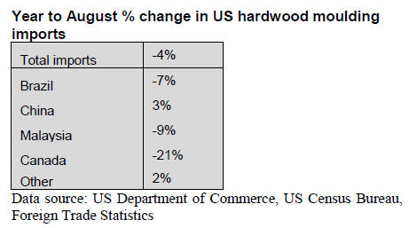 Year-to-date hardwood moulding imports were 4% lower