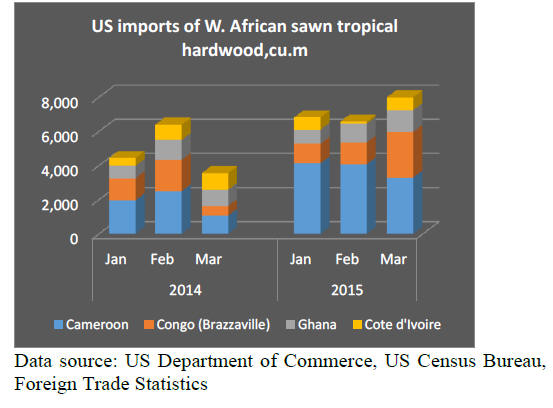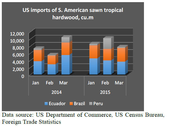 US imports of sawn tropical hardwoods increased by