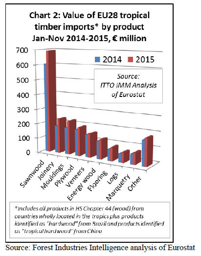 Malaysia to 225,700 cu.m, by 9% from Brazil to 115,700