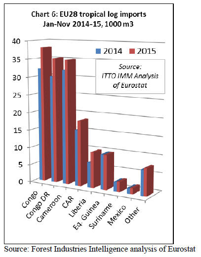 Congo (up 17% to 35,277 cu.m), Cameroon (up 9% to