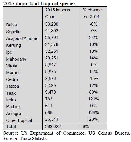 from 2014. Mahogany imports grew 14% to 20,251 cu.m.