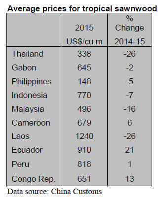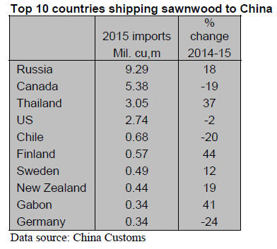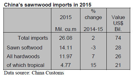 rise in sawnwood imports in 2015. China¡¯s 2015