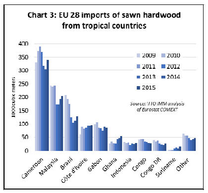 In 2015, EU imports of tropical sawn hardwood were 1.05