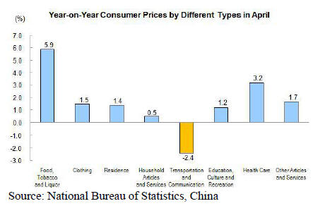 (CPI) for April rose by 2.3 percent year-on-year. Prices