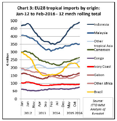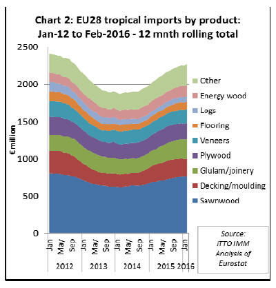 tropical wood products into the EU to February 2016 using