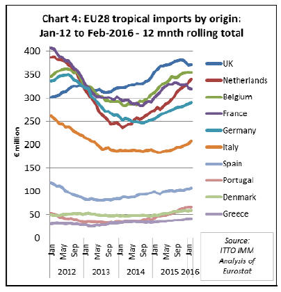 Chart 4 shows how the value of tropical wood imports into